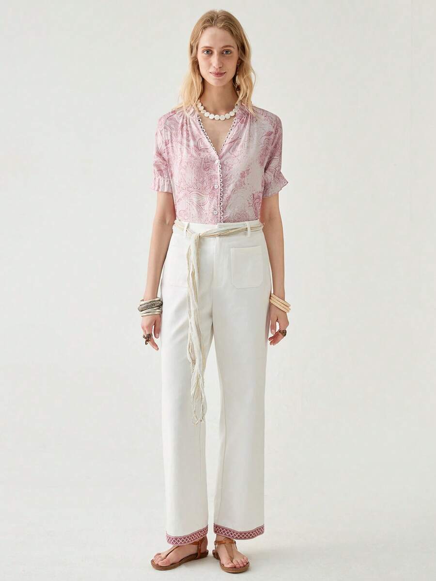 Women's Cashew Floral Print Short Sleeve Single Breasted Casual Shirt