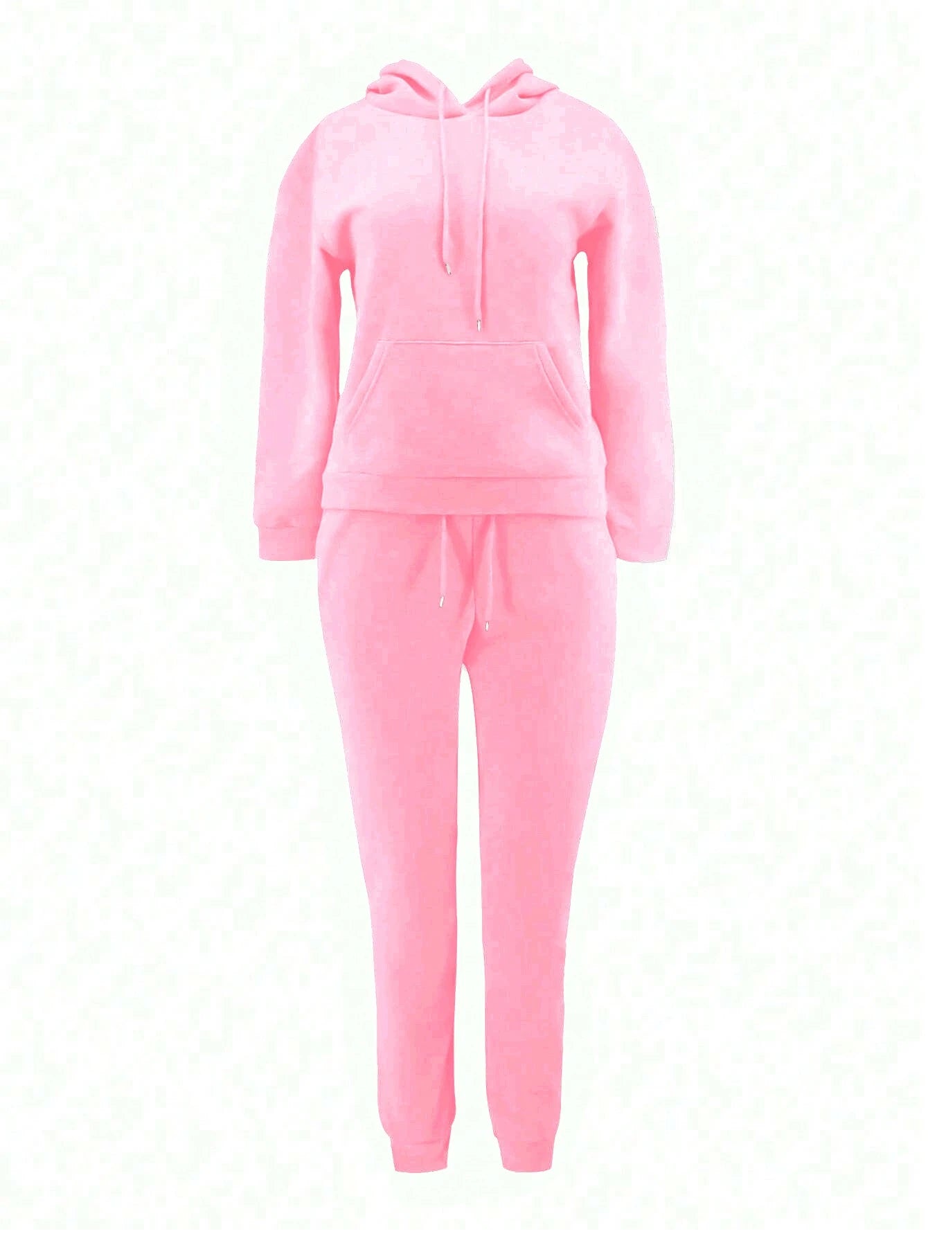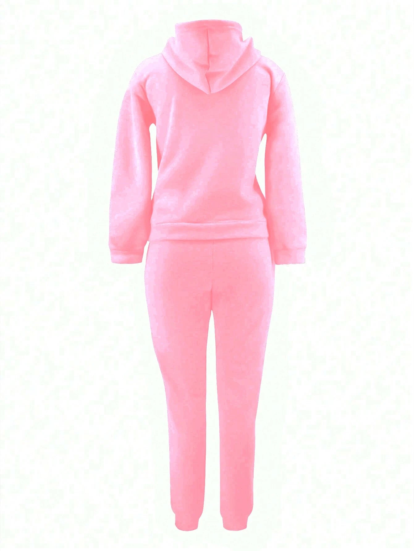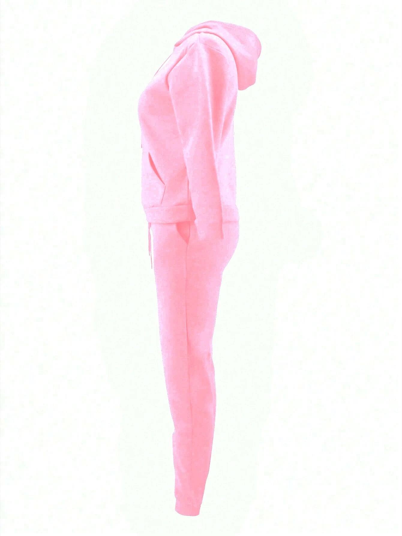 Details: Drawstring, Pocket Neckline: Hooded Sleeve Type: Regular Sleeve Style: Casual Color: Pink Pattern Type: Plain Pants...