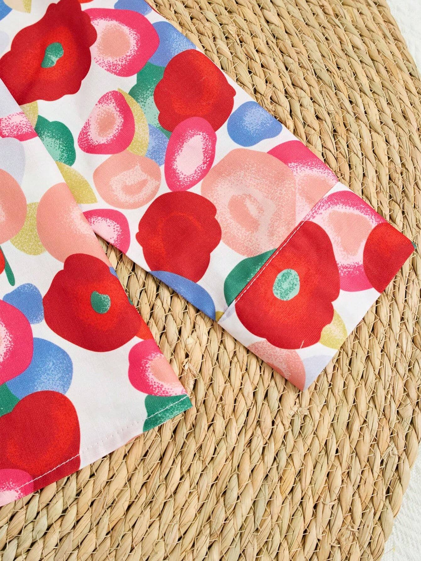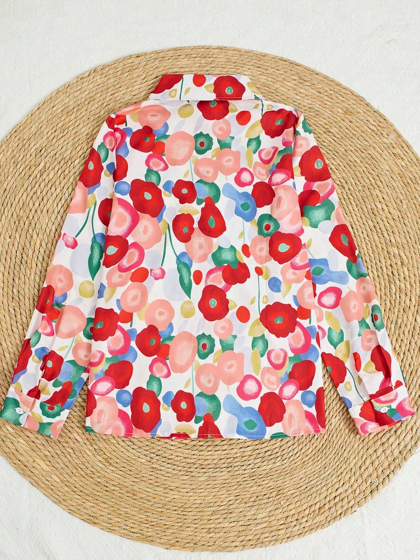 Women's Floral Print Long Sleeve Shirt, Suitable For Spring & Fall Casual Outdoor Activities, Daily Wear And Work