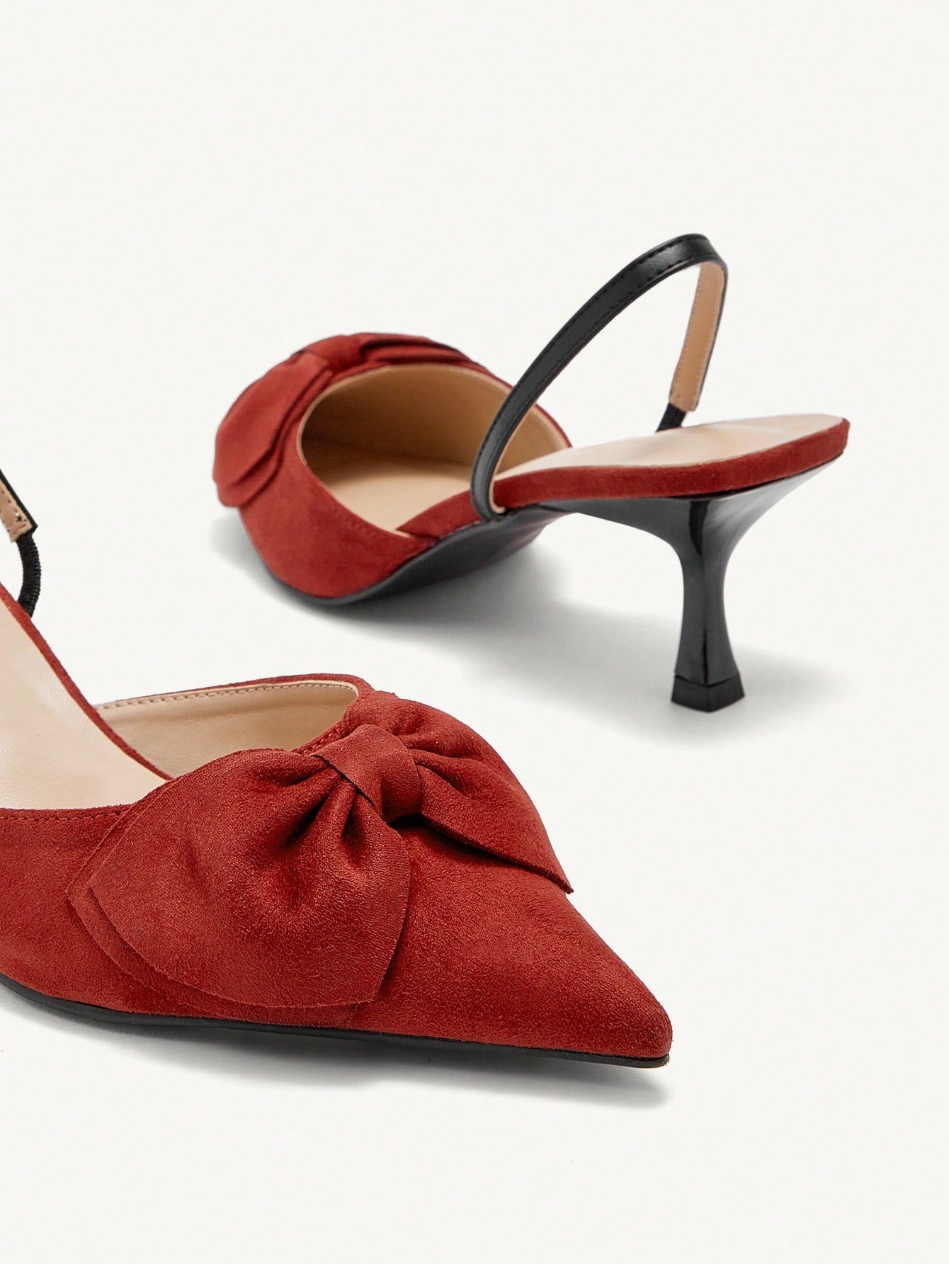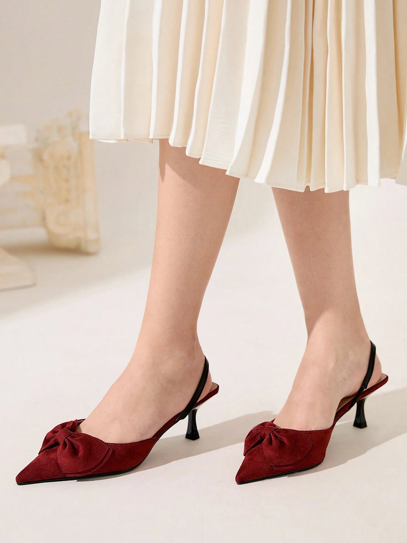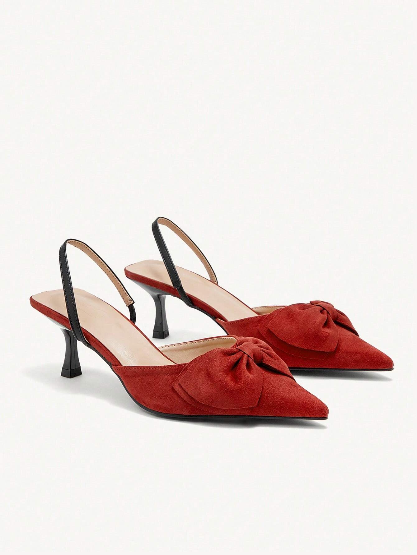Details: Bow Style: Elegant, Glamorous Color: Burgundy Toe: Point Toe Pattern Type: Plain Strap Type: Slingbacks Heels:...
