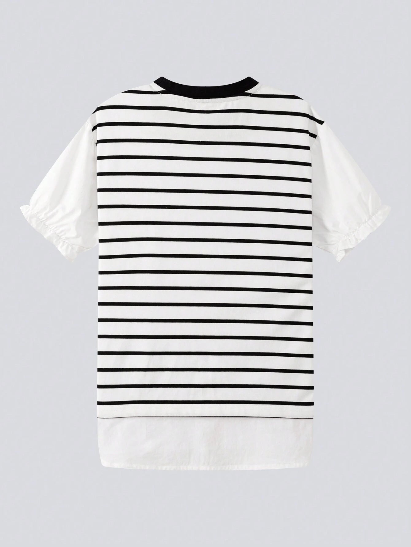 Color: Black and White Style: Casual Pattern Type: Colorblock, Heart, Striped Neckline: Round Neck Sleeve Length: Short...