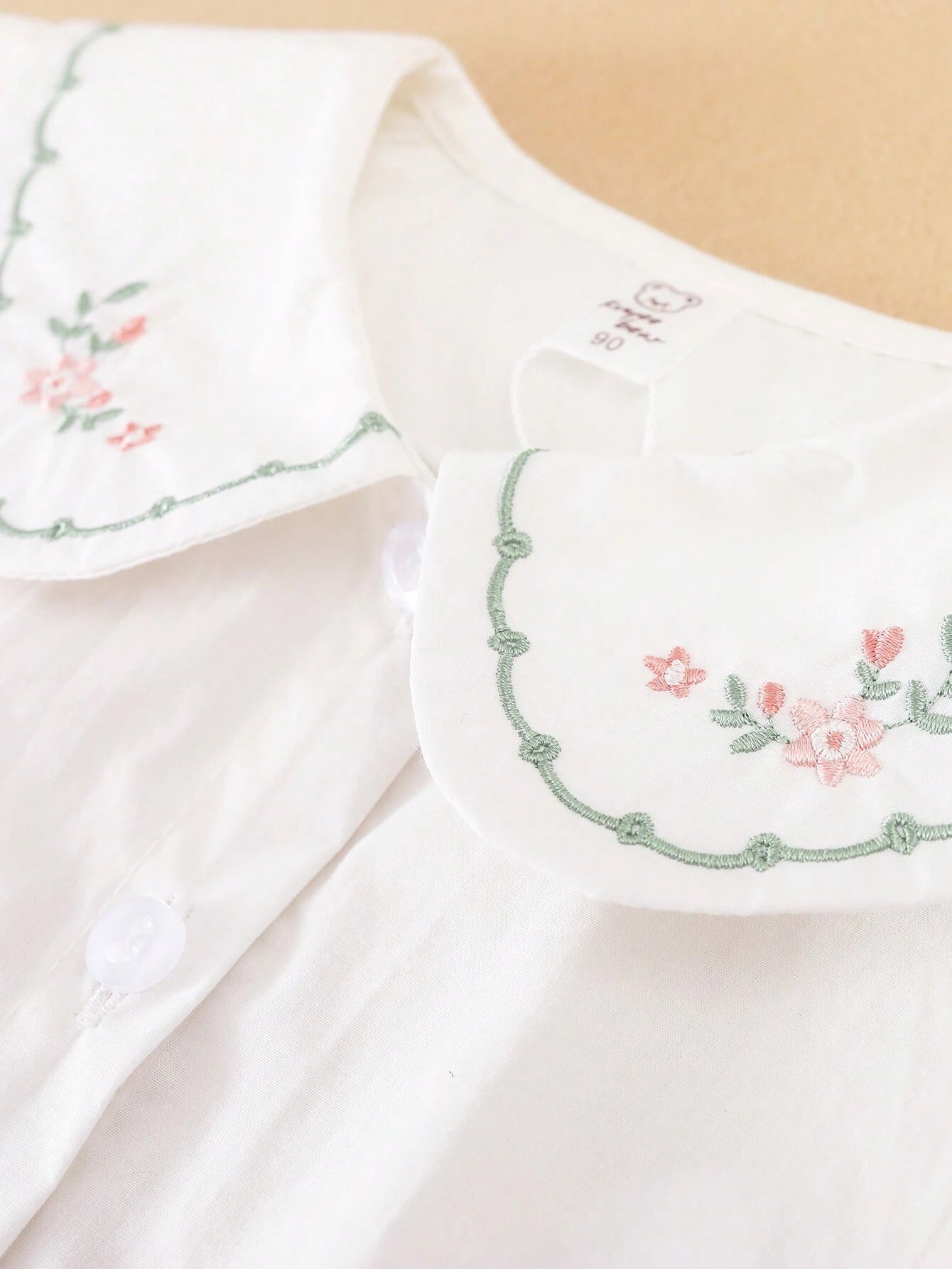 Color: White Style: Cute Pattern Type: Colorblock, Floral, Plants Type: Shirt Details: Embroidery, Frill, Button Front Neckline:...